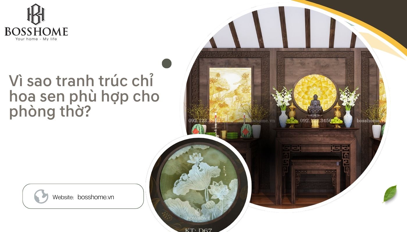 – Tính thẩm mỹ cao: Vẻ đẹp trang nhã, tinh tế của tranh trúc chỉ hoa sen tạo điểm nhấn ấn tượng cho phòng thờ mà không gây cảm giác rối mắt hay phô trương.